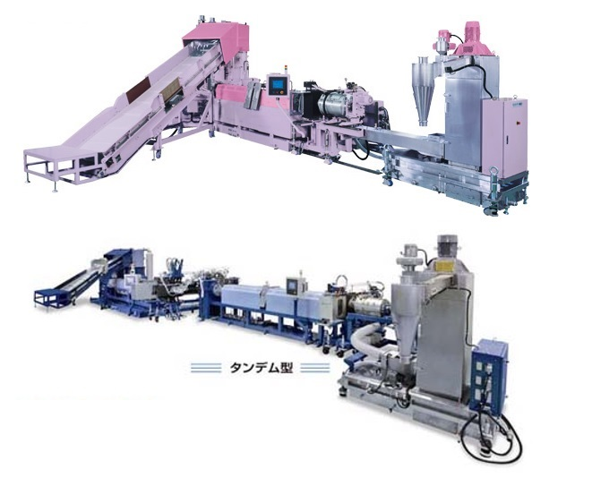 - タンデム型では、押出機及びスクリーンチェンジャーを2段に配置し、脱臭システムを設けることで、より細かな不純物及び残留水分の除去を実現。